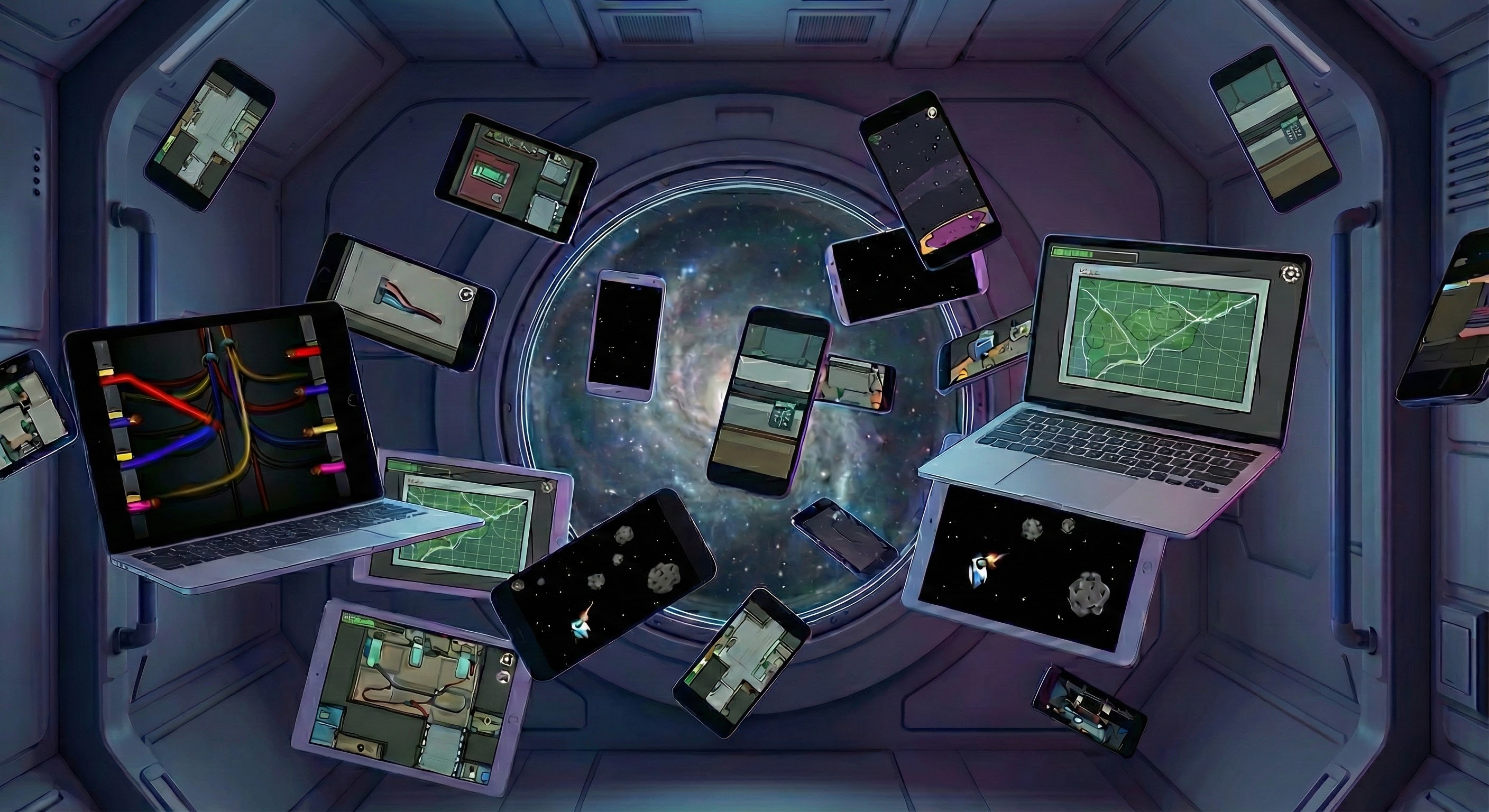Play "Among Us" in real life. Use web devices as task stations.